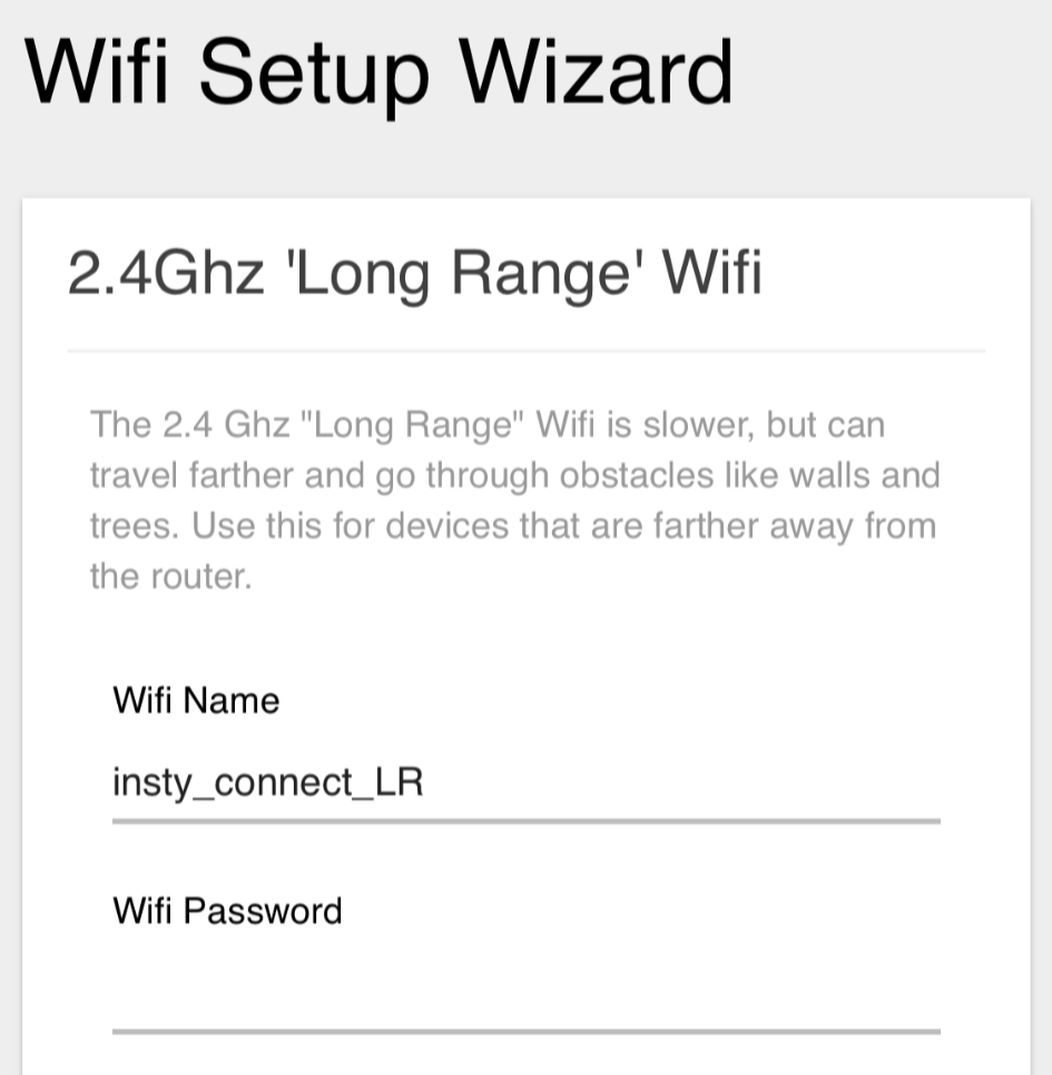 Create passwords for the 2 wifi networks, the 'Long Range' and the 'High Speed' network.
