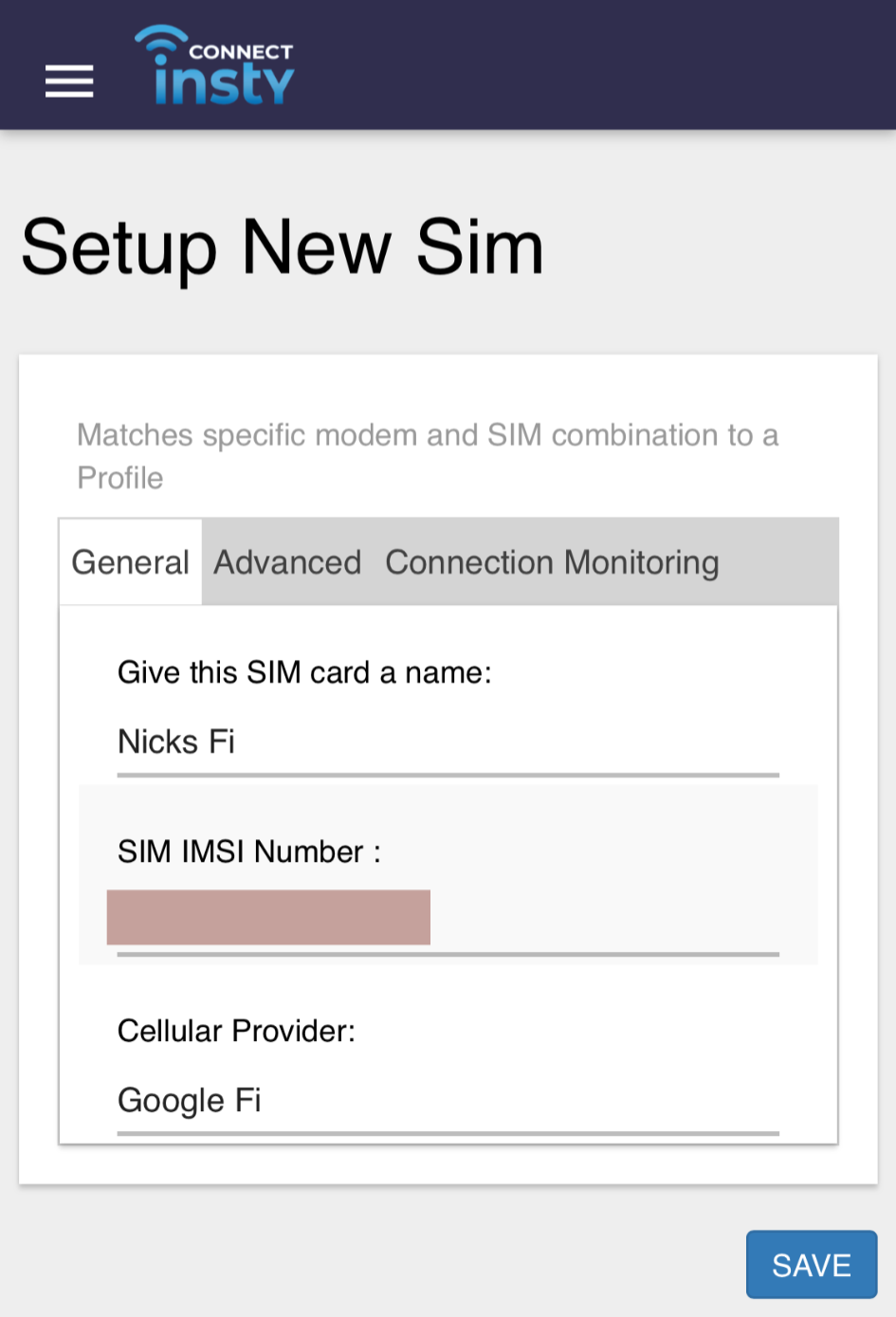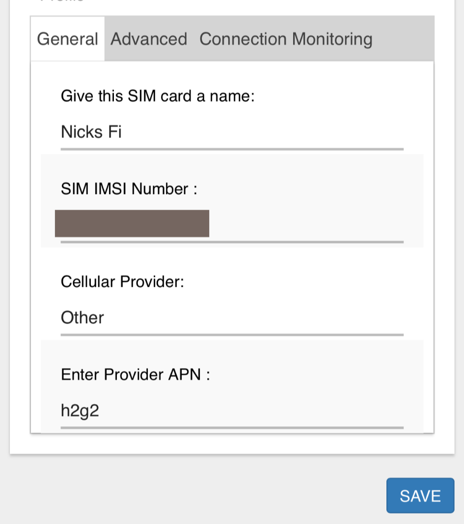 In the first line, give your sim card a name that you'll use to identify it.
