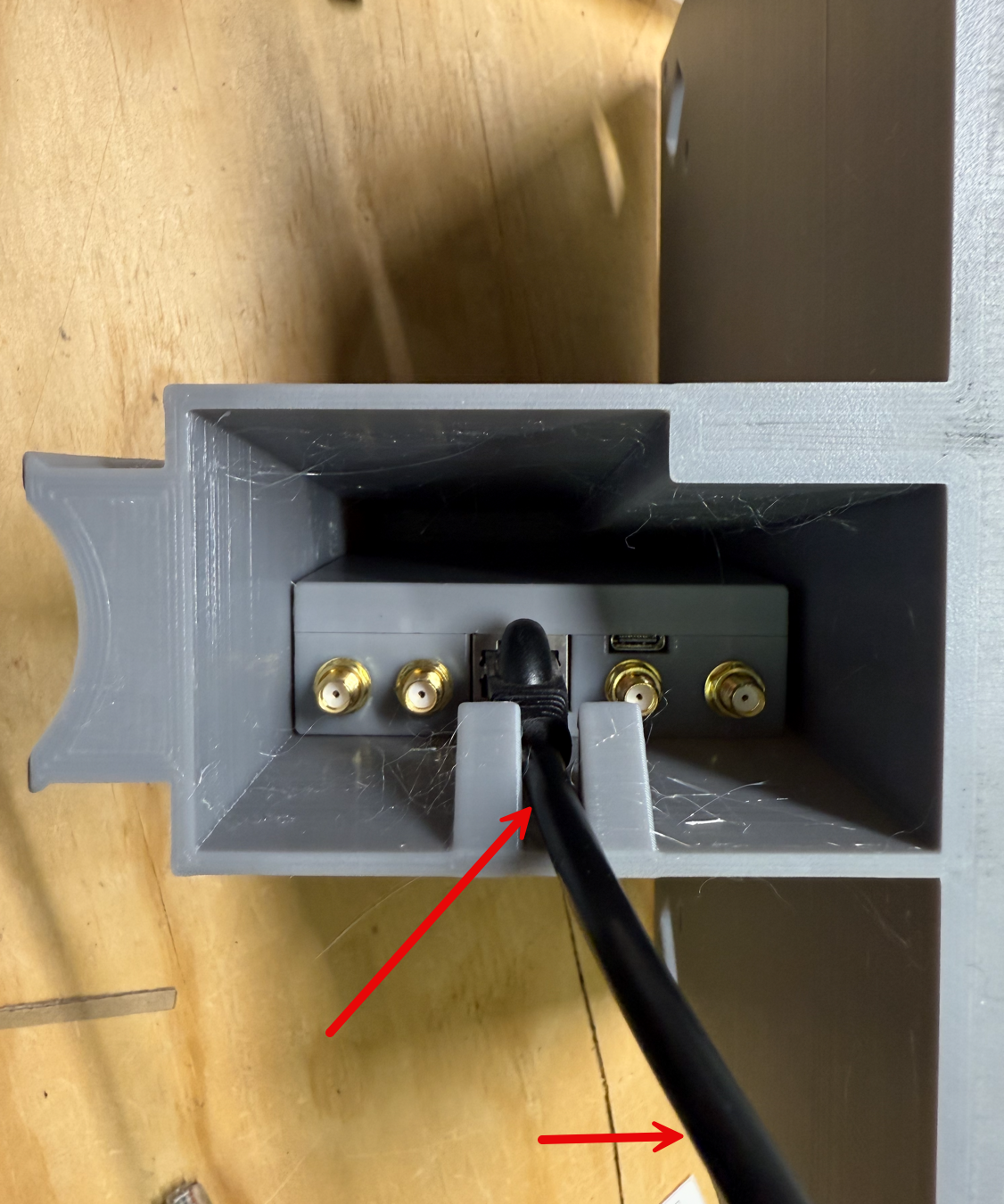 See wiring diagram for how to link up the antenna lobes to the POE modem. Make sure to position the modem in the case so the ethernet cable rests between the wire catch, so that if the cable is pulled, it will pull on the mount, and not the modem itself.