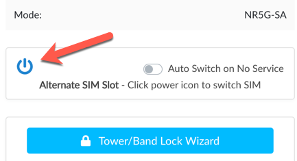 The Insty Connect modem has 2 sim slots. If you load a SIM in the secondary slot, you can click on the power icon below the signal dashboard to switch SIM slots on the modem.