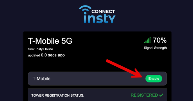 Do not use the "click to switch SIM slot" button below unless directed by Insty Support.