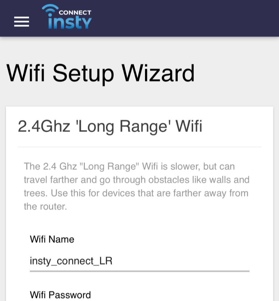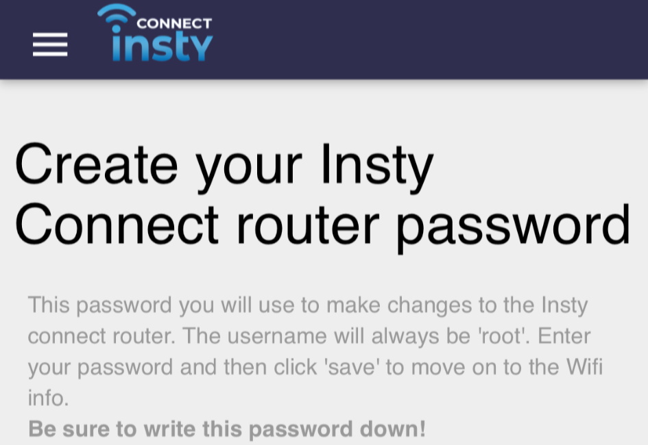 After you set your router and wifi passwords, head back to the Insty dashboard at http://my.insty -or- http://10.1.1.1
