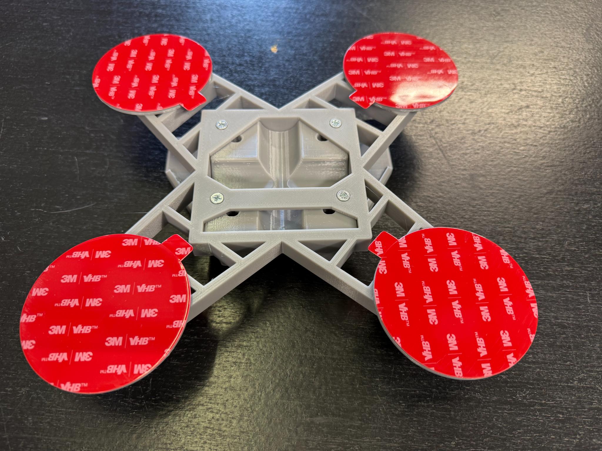 2. Once area is prepared and dry, peel the red backing off of the x mount pads and then stick to surface.