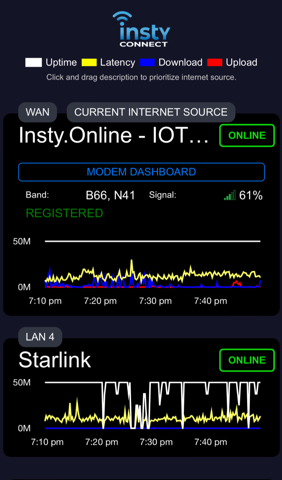 Speedify is a third-party bonding VPN service that can bond up to 3 WAN sources from the Insty Gen 2 router.