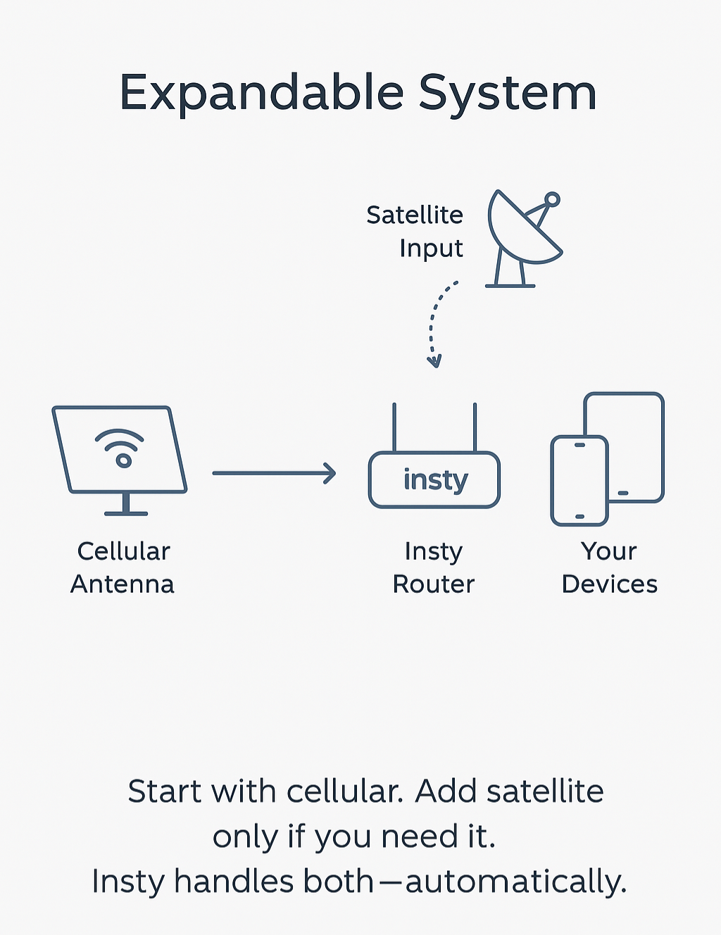 But if you already use satellite—or decide to add it down the line—Insty is built to integrate it seamlessly.