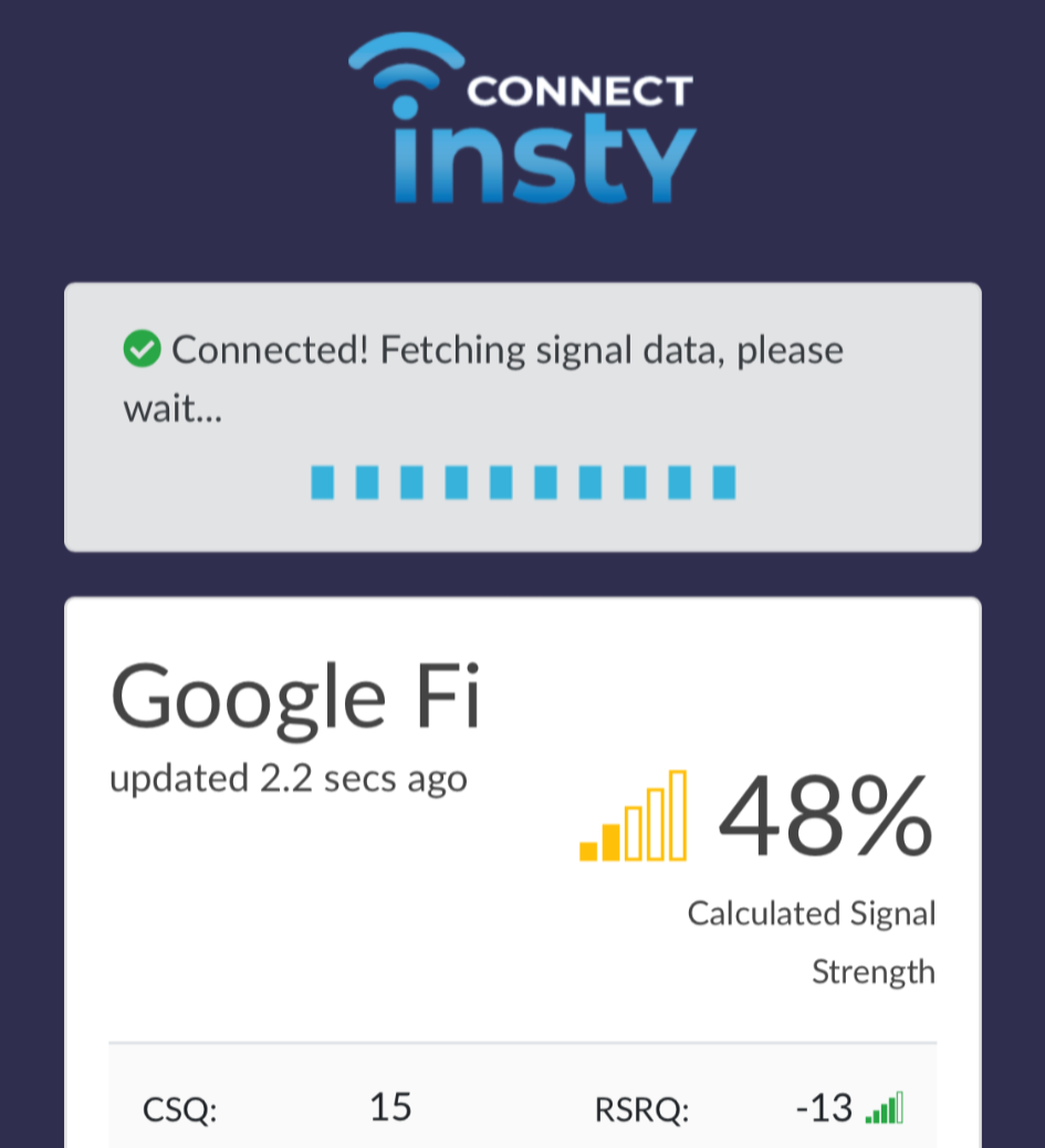 If the Insty Connect is not sensing internet, you may see the "RECONNECTING" message. Click the more information link to find out what might be keeping you from connecting.