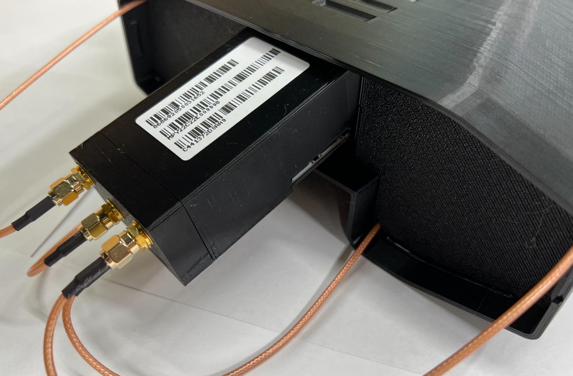 The modem module ships inside the antenna. Slide it out of the wings to gain access to the SIM slots on the side of the modem module.