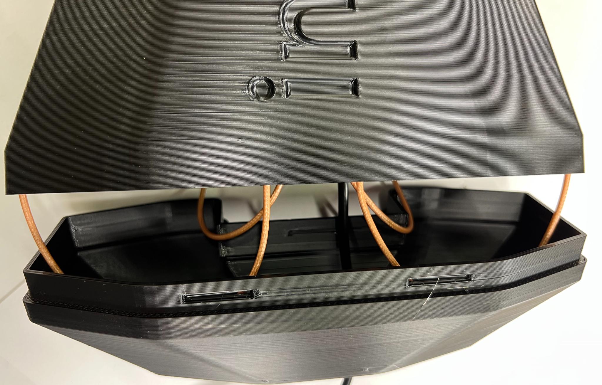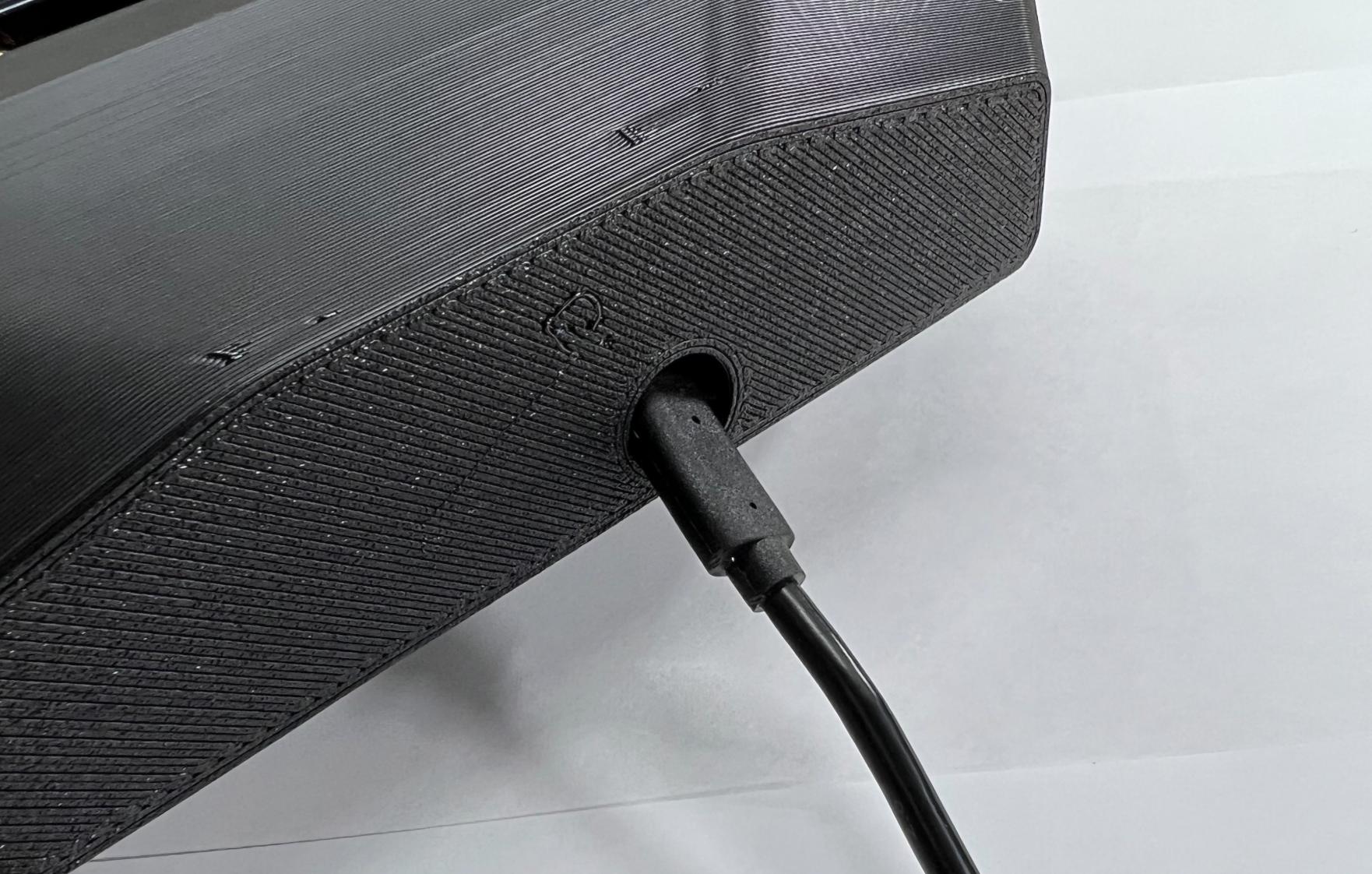 Slide the modem into the wings and insert the USB C cable into the notch to hold in place.