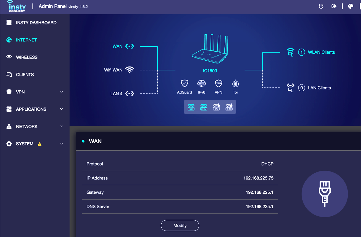 Insty Connect Gen 2 Router Admin Panel - http://192.168.8.1