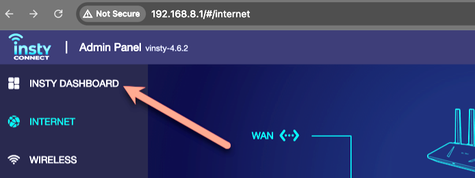 From the main router admin page, click on the "Insty Dashboard" link in the upper left menu.