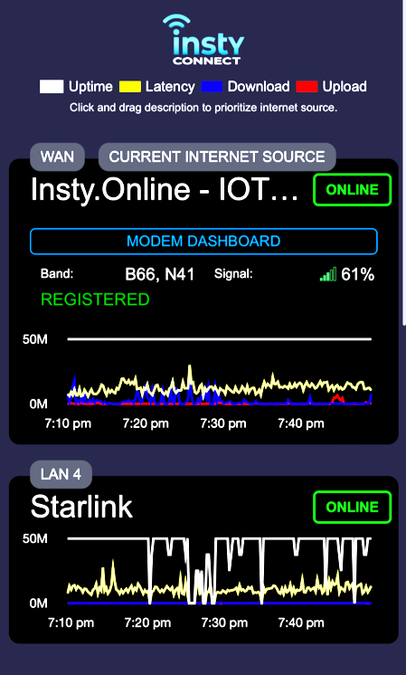 The Insty Connect includes a state of the art dashboard that can show you how your internet is working up to the minute.