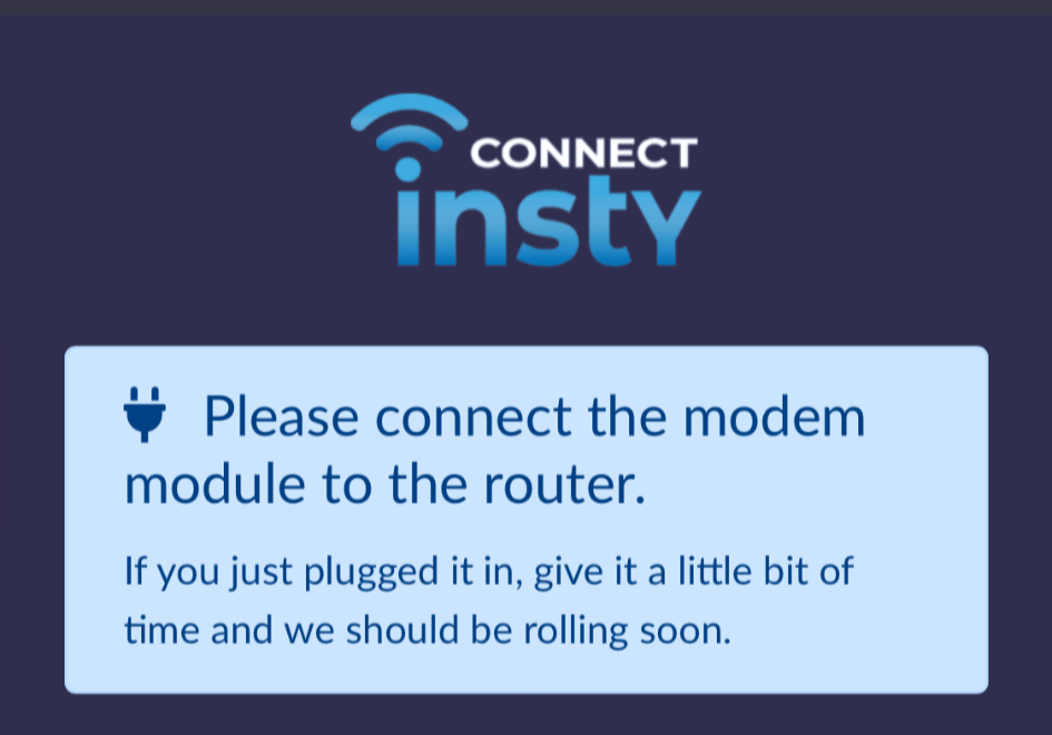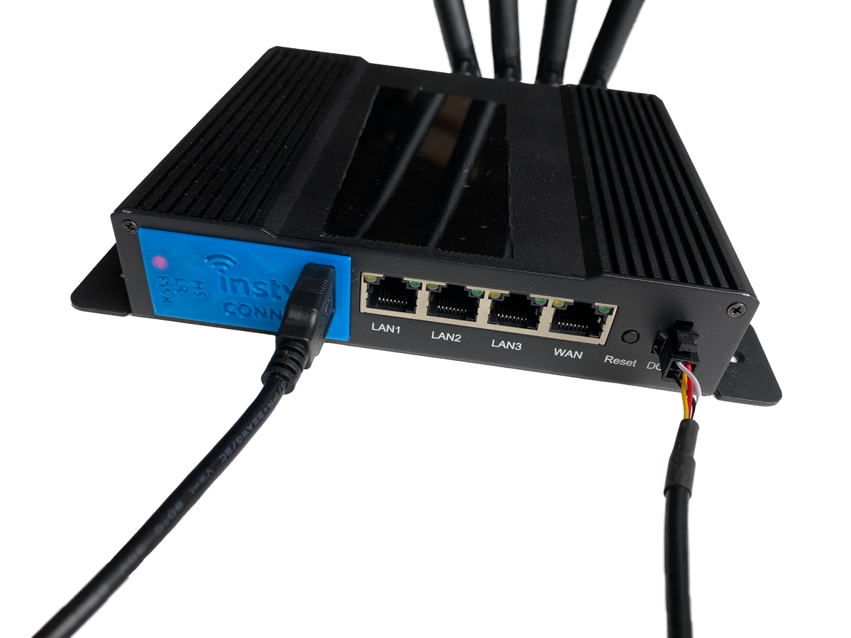 Plug modem data cable into the router in the port by the Insty Connect logo
