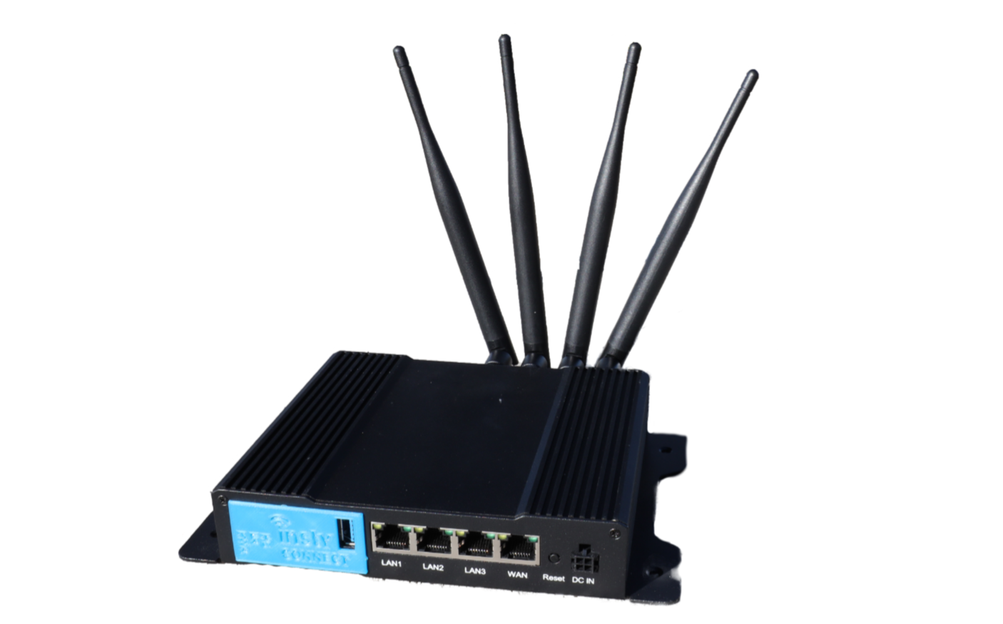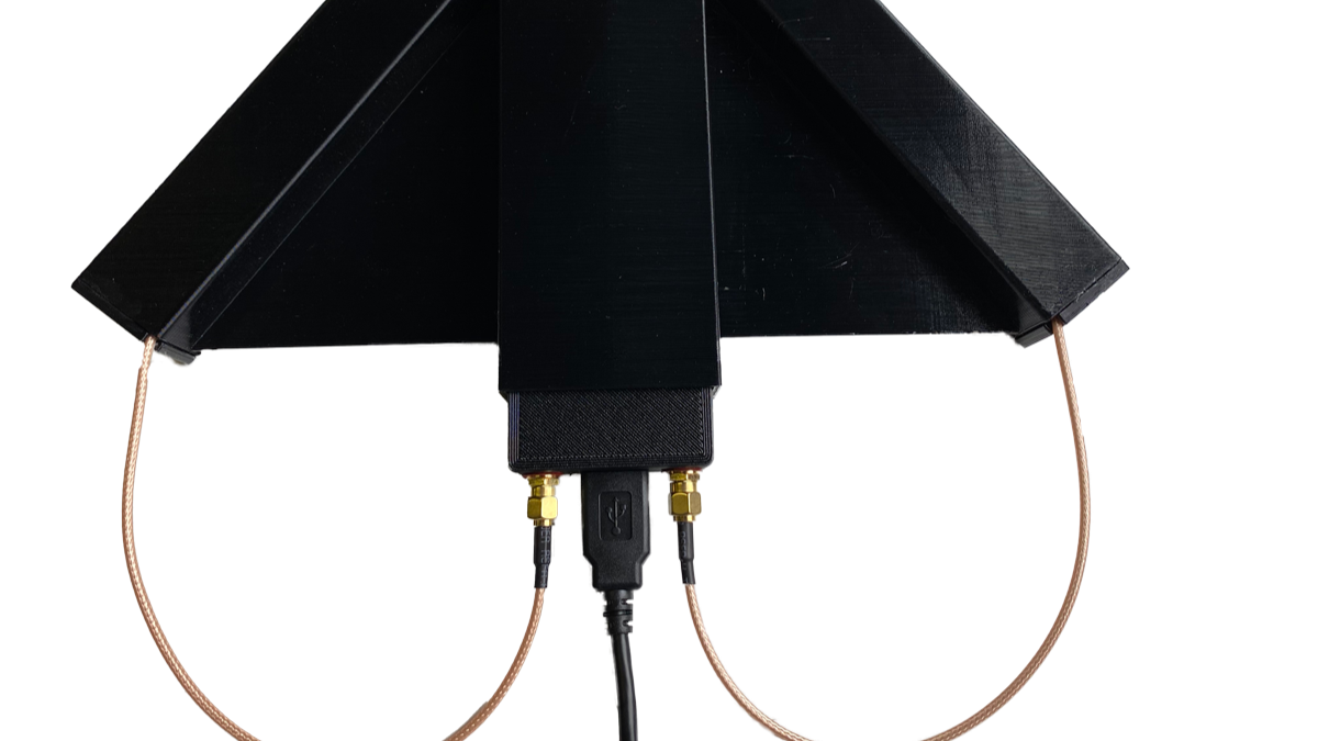 Insert modem partially into the angel wing antenna and connect the antenna wires to the antenna ports, and plug in USB data cable.