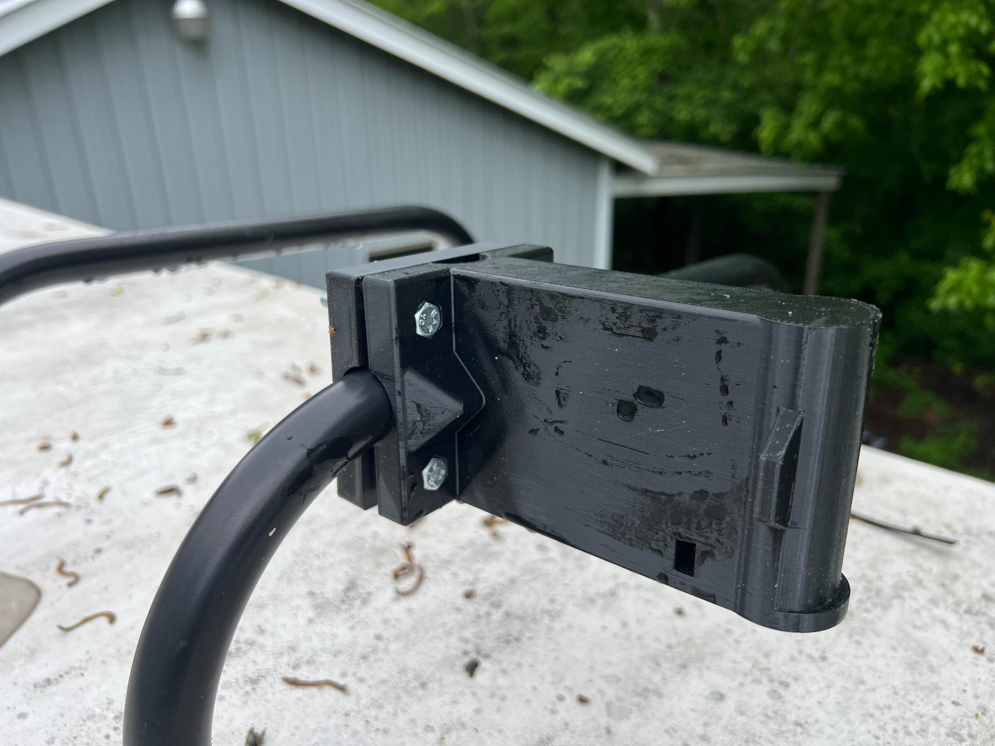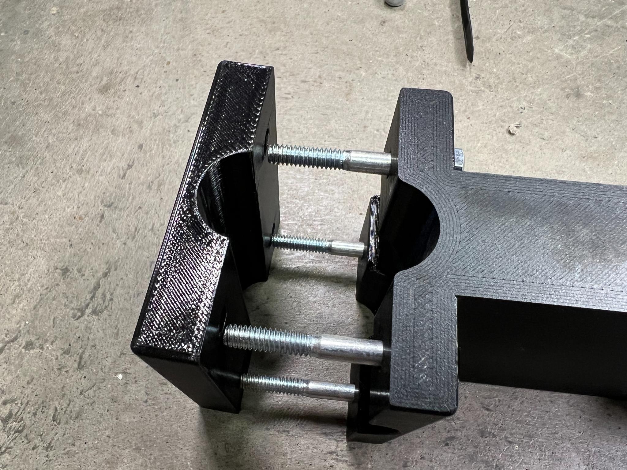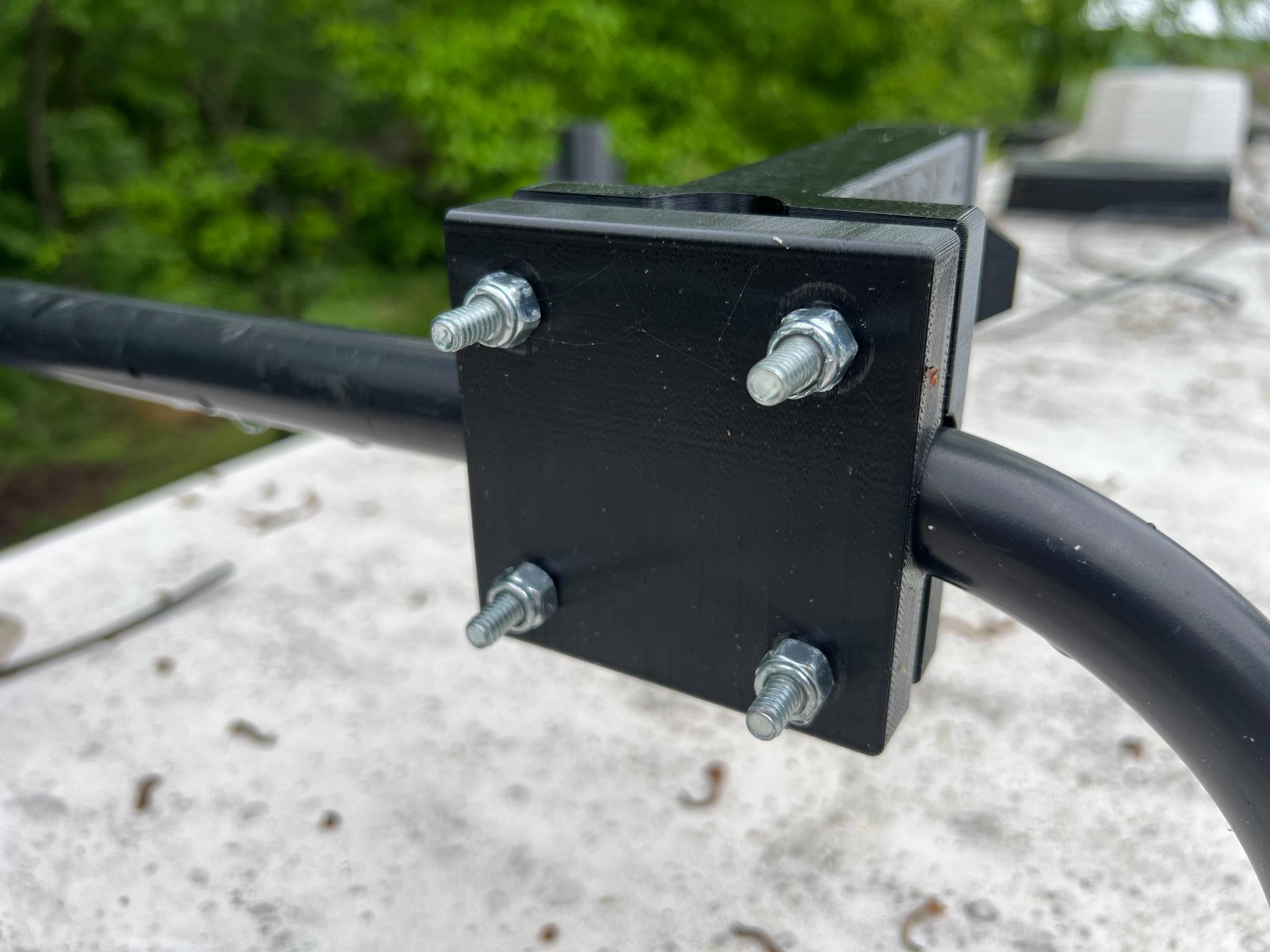 Use the thread locking nuts and tighten them equally on all sides ensuring a good fit. DO NOT overtighten, but make sure mount is tight enough so that it won't rotate along the pipe.