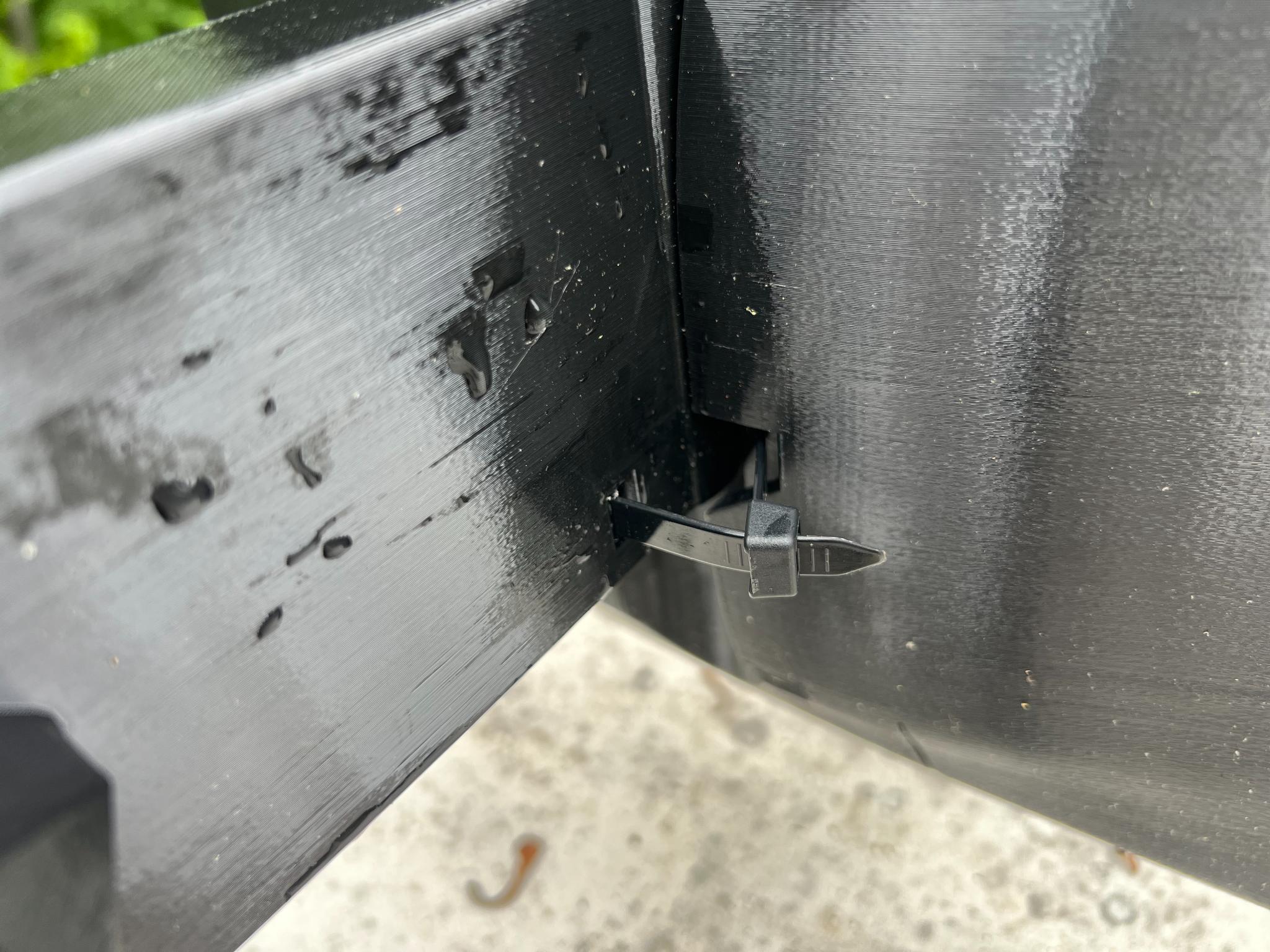 Make sure to slide completely down mount so the zip tie port lines up. Run the zip tie through the port on the antenna, and then with your finger on the opposite side, guide it through the port on the mount until they meet at the start position. Tighten zip tie and cut end.