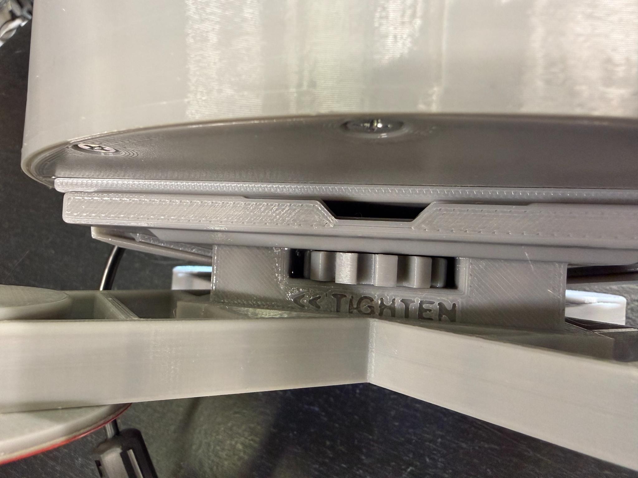 Rotate the lock wheel in the opposite direction of "tighten" to bring the lock mechanism all the way down.